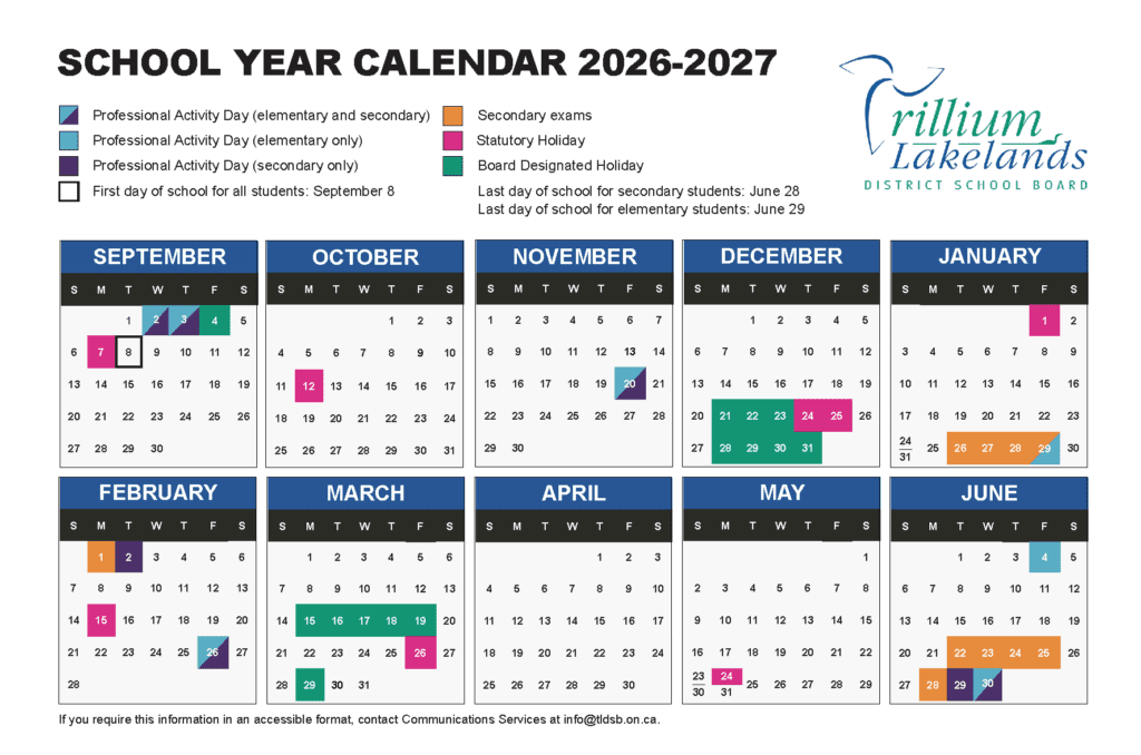 Parents/guardians will receive a hard-copy of the calendar in September.